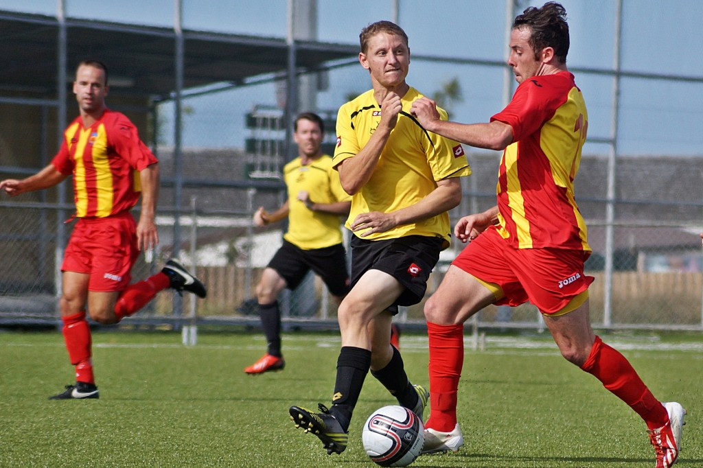 The game was a local derby and it really showed. But it felt like more than that. You really got the feeling these two sides didn’t like each other very much at all. It was niggly and packed with tension. It started off with a hiss and a roar and both the pace of the game and the mood of the combatants was tough for the officials, who struggled to keep up. It’s a miracle there was not a sending off or six, let alone more bookings than the two we saw. It was pretty early in the game when the visitors, last season’s runners up, took the lead via Brent Mayhew, but it should have been 2-1 even at that point! The action had been end-to-end and shortly after a Ranui Swanson player missed an open net, Waitemata hit the bar.