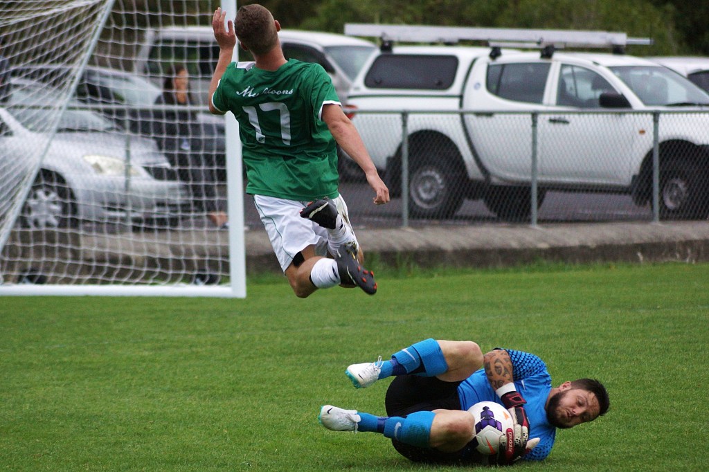 Open and attacking for much of the encounter, the sides initially took turns to look the stronger of the two. Metro enjoyed the brighter start, looking comfortable in possession and patiently advancing towards their opponents’ goal. But having said that, when Hibiscus Coast got the ball they looked dangerous, launching sporadic attacks down the left flank trying to exploit the wing that the talented and experienced Metro left back Ian Hogg wasn’t on. They rattled the woodwork at one point from a Dan Bungard shot, and then they looked to have nicked the lead when Trent Mayes rounded the keeper, but alas he could only brush the far post with an open net in front of him.