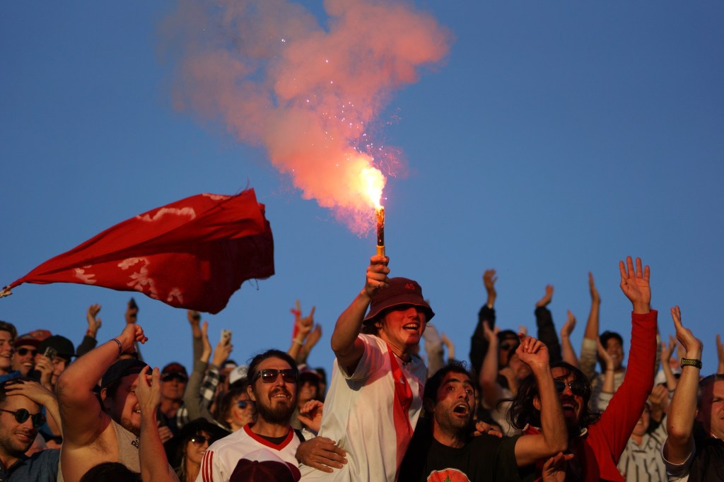 The one and only previous meeting of these two sides was a 1-1 draw under lights at William Green Domain. That night saw Waiheke ultras scaling the fence to let off flares from high above Pakuranga Road. This time, on a brilliantly sunny winter afternoon at their Onetangi Sports Park home, a phenomenal crowd of circa 600 gathered to sing, dance, drum, throw streamers, rip flares and provide easily the best atmosphere you will ever see at a football game in this country.